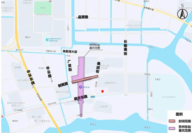由于苏州东站是省内首个地下高铁站,部分站房结构位于创苑路(广贤街-桑田街)地下,开挖基坑深,施工难度大,施工期间无法保障车辆行人通行条件。经公安交警、园区管委会、中铁建工等单位多次研究会商,为保障施工安全和交通安全,2025年4月22日至2027年12月31日东站施工期间,对创苑路(广贤街-桑田街)进行临时交通疏导,禁止机动车、非机动车和行人通行。待苏州东站建成后,将对创苑路全线按照双向六车道进行恢复。
