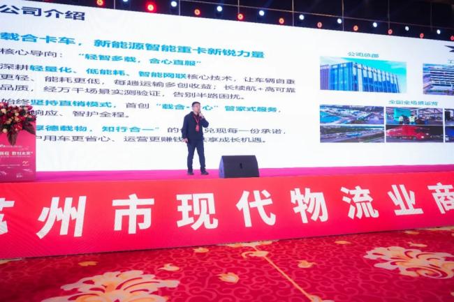 载合汽车科技(苏州)有限公司董事长张磊分享“长三角绿色智慧运力产业联盟”的构想与解决方案。