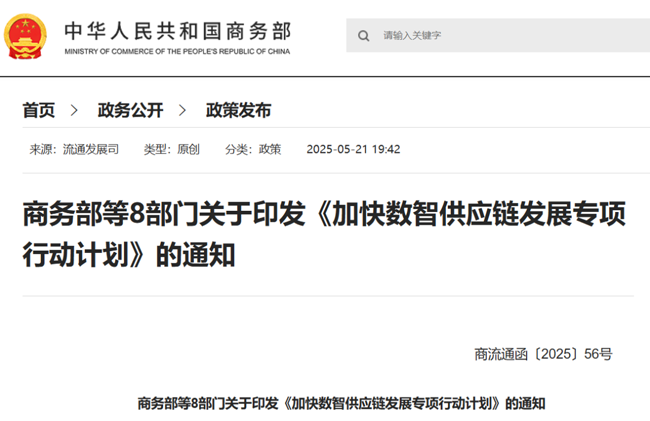 关注我们 近日,商务部、国家发展改革委、教育部、工业和信息化部、交通运输部、农业农村部、税务总局、国家数据局等8部门联合印发了《加快数智供应链发展专项行动计划》(以下简称《行动计划》)。商务部流通发展司负责人就《行动计划》进行解读。