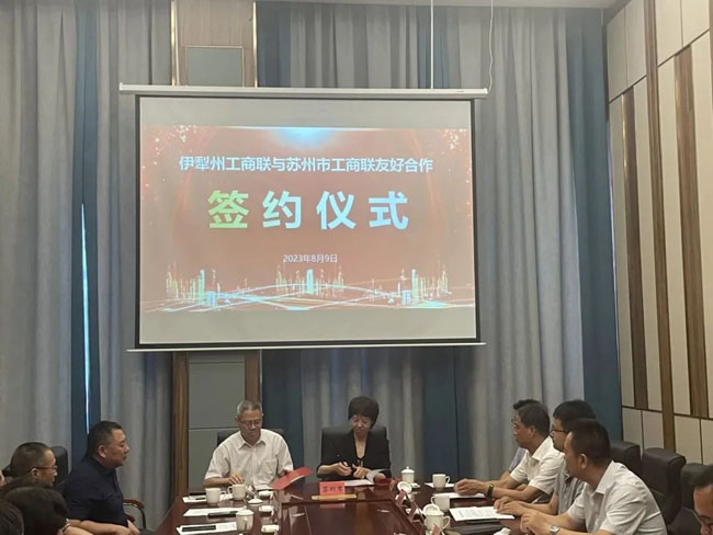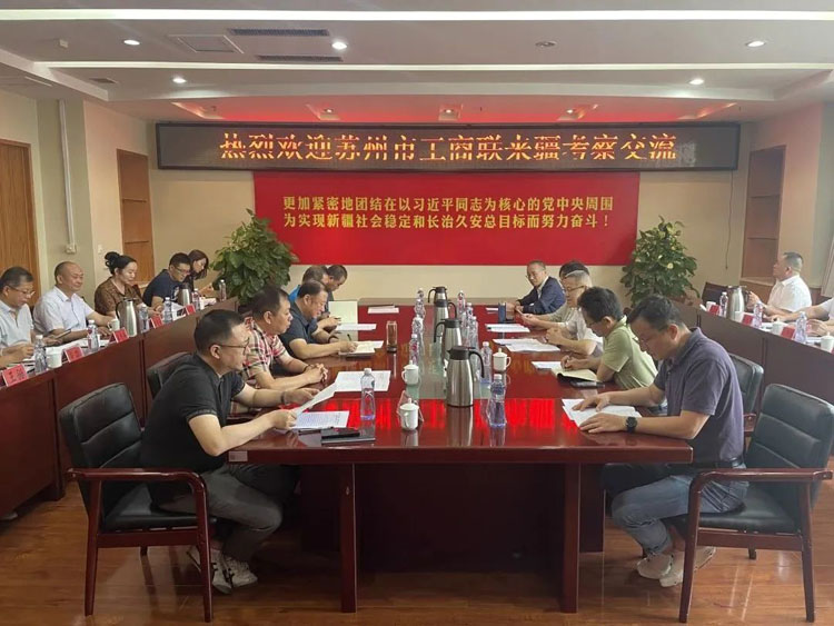 周俊对新疆维吾尔自治区工商联长期以来对赴疆创业的苏州籍企业家、新疆苏州商会的大力支持和关心帮助表示感谢。双方就助力打造营商环境、年轻一代企业家培养、服务促进“两个健康”举措、发挥商(协)会职能作用等方面的经验做法进行了充分的交流。双方表示将进一步发挥各自区域特色、产业特点,加强交流互动、拓展合作领域,资源共享、优势互补,共同促进两地民营经济高质量发展。