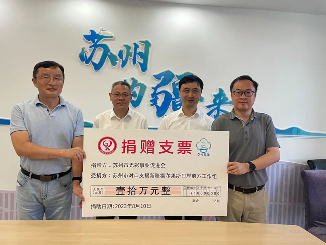 在走访苏州援疆工作组驻地时,霍尔果斯经济开发区管委会副主任、市委副书记、江苏援伊·苏州工作组组长孙晓江介绍了近年来苏州援疆工作所做的工作和取得的成绩。考察团一行对援疆干部人才以他乡作故乡,无私奉献、攻坚克难的精神品质表示深深的敬意,对苏州援疆工作所取得的丰硕成果予以充分肯定。期间,苏州市光彩事业促进会向苏州援疆工作组民生项目进行了捐赠。