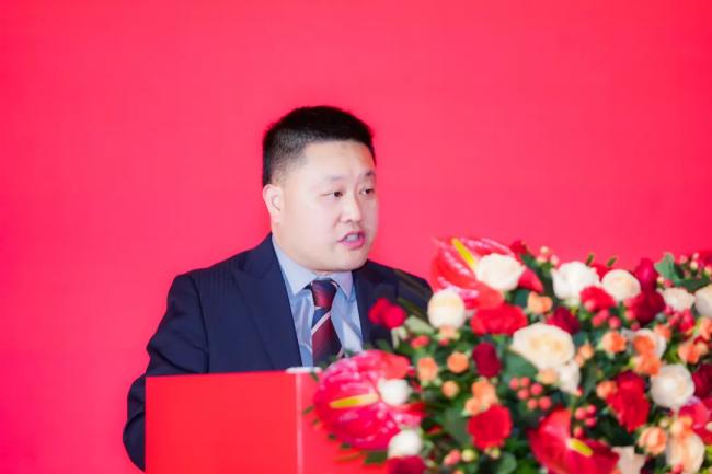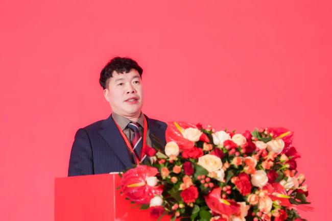 商会会长、江苏海鲨物流科技有限公司董事长王大为致欢迎辞。王会长回顾了商会二十年的发展历程,对各级领导、各界朋友及全体会员的长期支持表示衷心感谢,并对商会未来的发展表达了坚定的信心与美好的期许。他强调,站在新起点,商会将继续发挥桥梁纽带作用,引领行业以“智”提效,以“链”聚力,以“数”创未来。