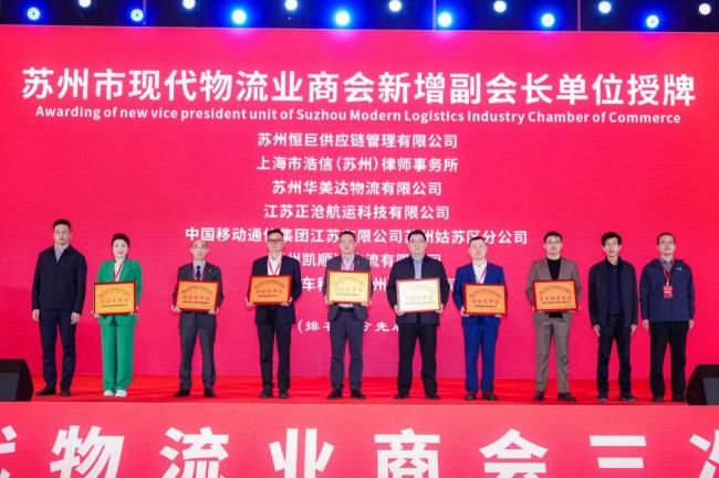 关注我们 廿载耕耘,智链同行。2026年3月28日,以“智链新程·数创未来”为主题的苏州市现代物流业商会四届三次会员大会暨成立二十周年庆典在苏州太湖国际会议中心隆重举行。大会回顾了商会二十载砥砺奋进的光辉历程,共绘行业高质量发展的宏伟蓝图。苏州市工商联、市民政局、市交通局、市商务局、宣城市交通运输局、相关金融机构、院校及行业企业的领导、专家、会员代表等嘉宾齐聚一堂,共襄盛举。