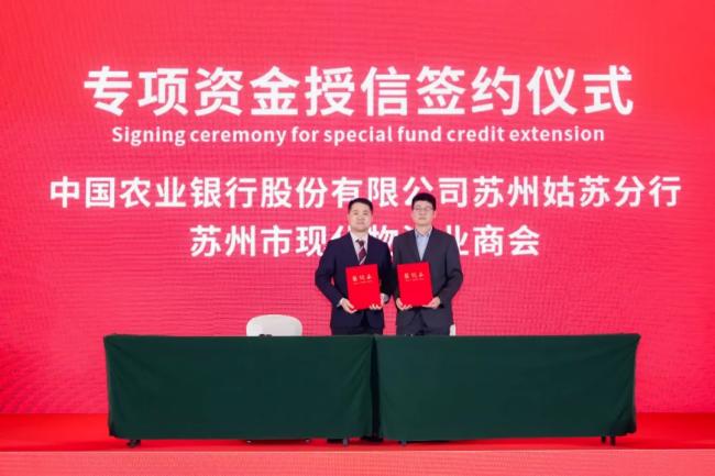 金融支持签约,中国农业银行苏州姑苏支行与商会签署专项资金授信协议,以金融活水精准助力会员企业发展。