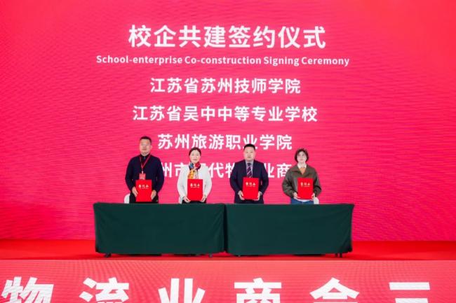 校企共建签约,商会与江苏省苏州技师学院、江苏省吴中中等专业学校、苏州旅游职业学院签署校企共建协议,深化产教融合,共育物流行业高素质技术技能人才。